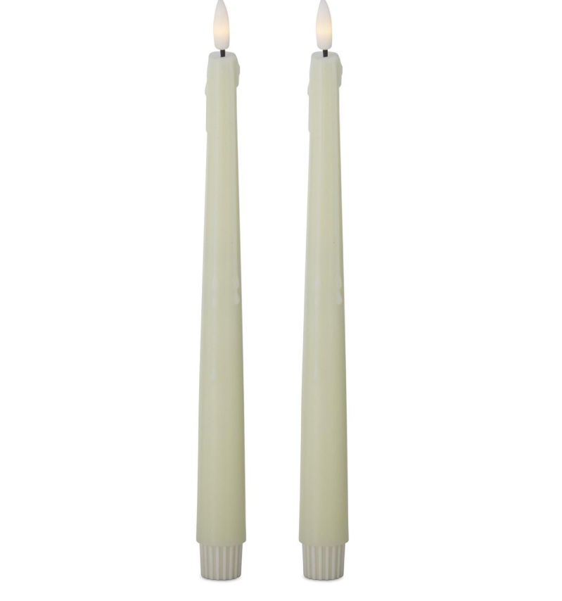 Create a warm, elegant glow anywhere in your home with this Set of 2 LED Drip Taper Candles in a classic cream finish. Measuring 11.5 inches tall, each candle features a realistic wax-drip design and a soft flickering LED flame that mimics the ambiance of real candlelight—without the mess or risk of an open flame.
