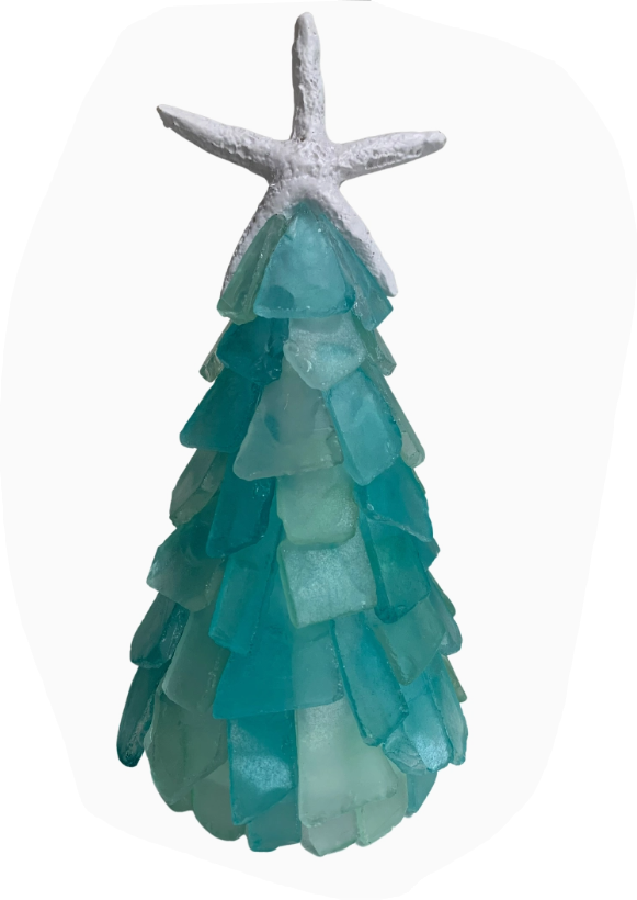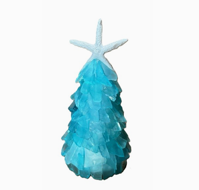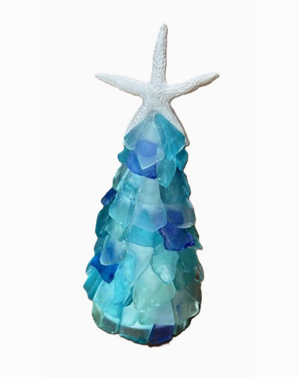 At the crown of this coastal masterpiece rests a real starfish topper—a natural and striking touch that anchors the design in authentic seaside charm. The starfish adds an organic elegance, seamlessly blending the artistry of the tree with the raw beauty of the sea. This creation exudes tranquility and coastal allure, perfect for evoking the serenity of the shore. Made in USA