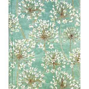 Elegant journal features a display of delicate white Allium Blossoms against a softly textured background.
