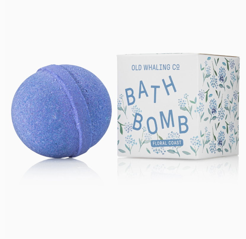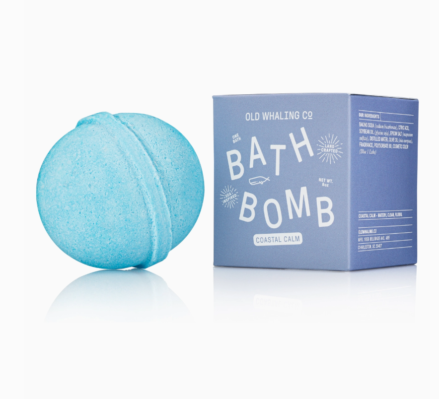Handmade in historic Charleston, SC with baking soda, citric acid, Epsom salts, olive, and soybean oil, each Old Whaling Co. 8oz Bath Bomb will leave your skin feeling moisturized and lightly scented. This handcrafted bath bomb's soothing fizz and sea-inspired fragrance are perfect for a relaxing soak, rejuvenating the senses and cleansing the skin. Bath bombs come individually boxed and are wrapped in cellophane bags inside the box. Bath bombs make great gifts!