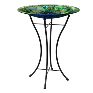 Glass Birdbath with Stand Peacock