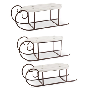 Whitewashed Wood Sled with Rust Colored Runners