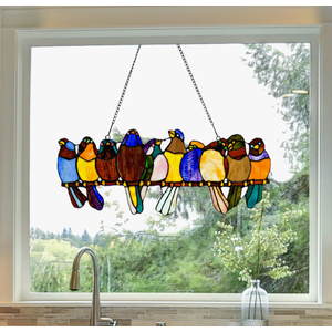 9.5" H Multicolor Birds Window Panel