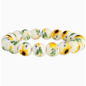 Vintage Yellow & White Ceramic Stretch Bracelet