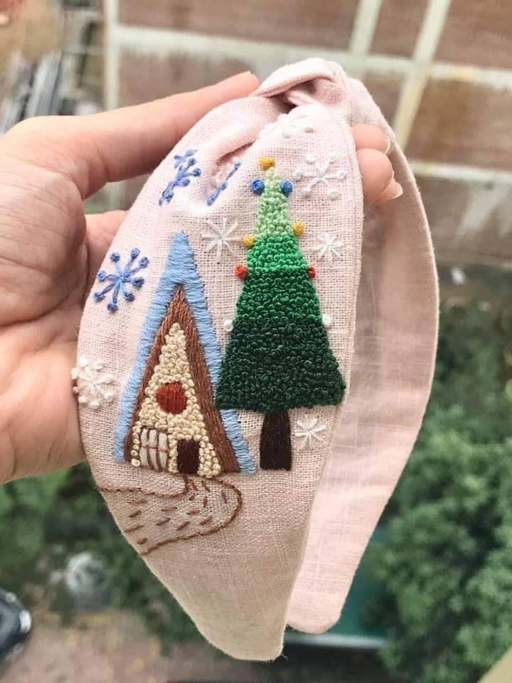 Add some holiday cheer to your wardrobe with this delightful Christmas-themed embroidered turban! Perfect for getting into the festive spirit, these accessories are hand-embroidered with love and crafted to bring a touch of charm and coziness to your Christmas celebrations.