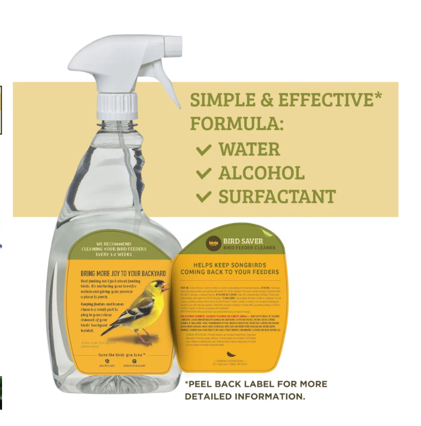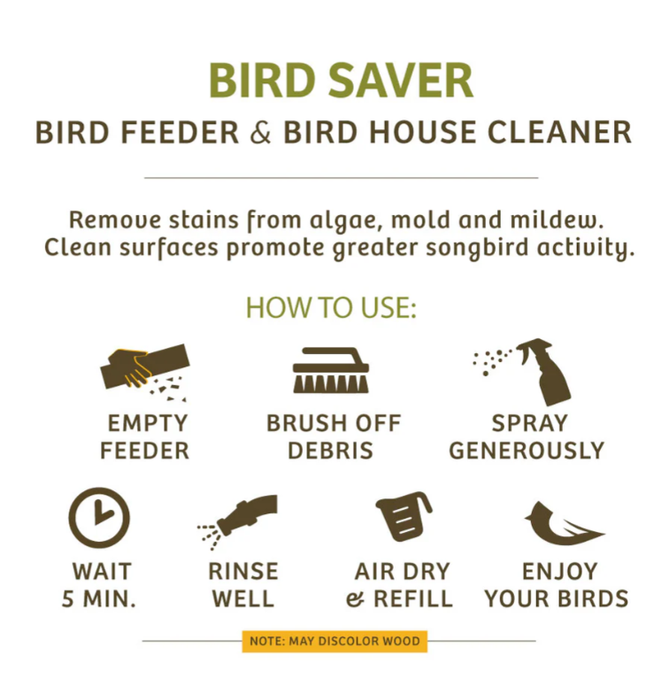 How to Use: To use, just empty the feeder, house, or bird bath and brush off any debris. Spray our cleaner generously on the surface and wait 5 minutes. Rinse well then air dry. Then feel free to refill the feed or nesting materials and enjoy your birds.