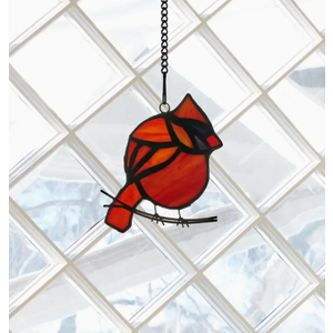 Handcrafted with vibrant red colored stained glass, this bird-shaped panel adds charm to any window. The included metal chain makes for easy and secure hanging, while its stunning display comes to life when illuminated by sunlight. Keep your panel looking pristine with a little lemon oil for easy care and effortless maintenance.