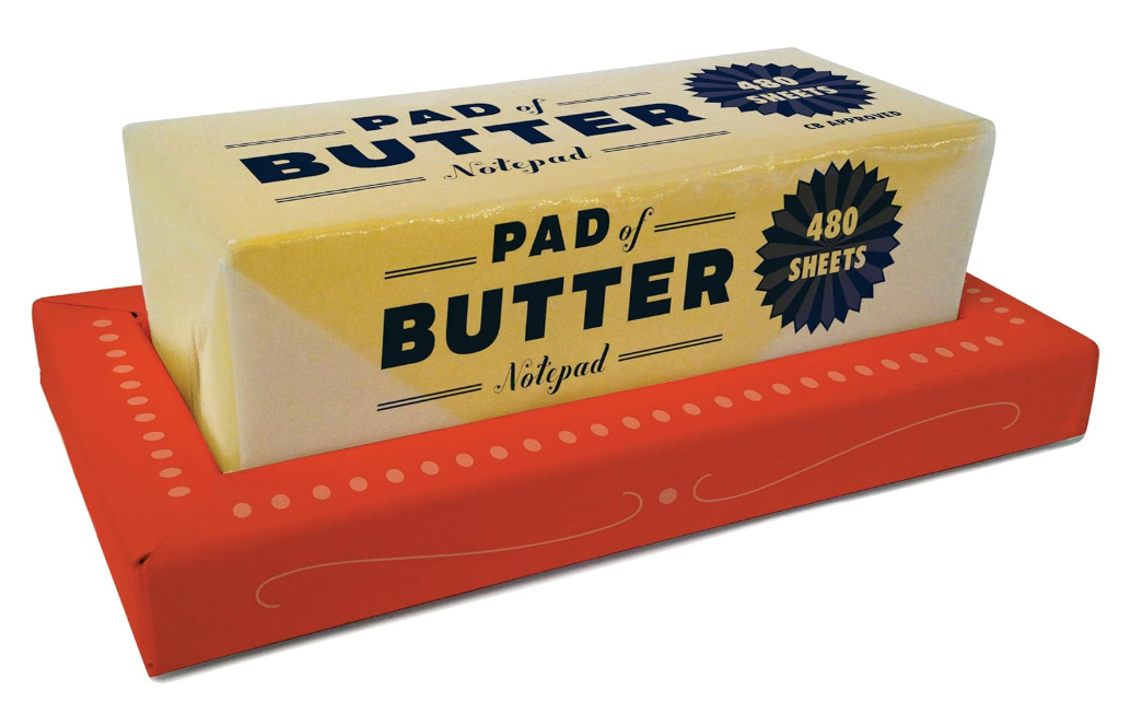 This stacked notepad looks just like a stick of butter, complete with 480 non-sticky sheets of yellow, unlined paper wrapped in what resembles parchment paper. And it sits atop a red cardboard butter dish to complete the look!