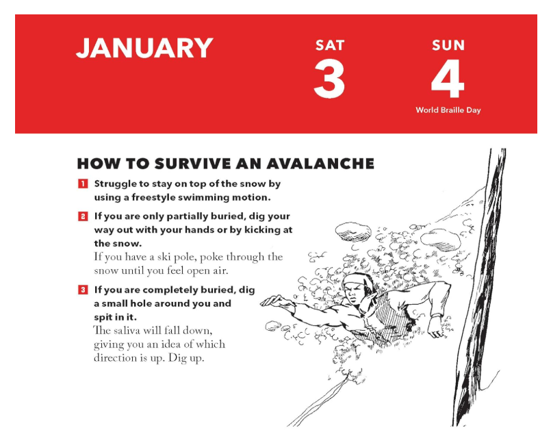 Danger! It lurks at every corner—sharks, grid collapse, a sinking car, a malfunctioning parachute. This crucial, illustrated daily calendar from the authors of the internationally bestselling Worst-Case Scenario Survival Handbook series is packed with step-by-step guidance and essential knowledge for extreme and everyday scenarios. Because you just never know.