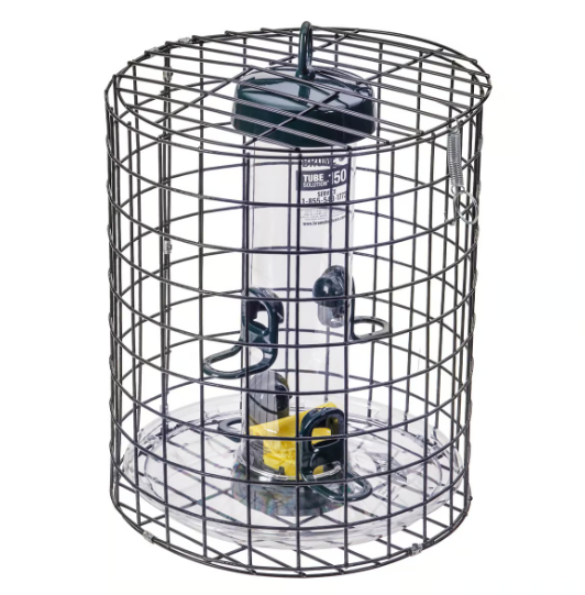 Brome 150 tube feeder comes paired with our Squirrel-proof 14" wire cage. The cage is specifically designed to protect your feeder against squirrels, grackles, starlings, and other big birds. The Brome seed tray is also included to catch dropped seed and provide an additional perch.
