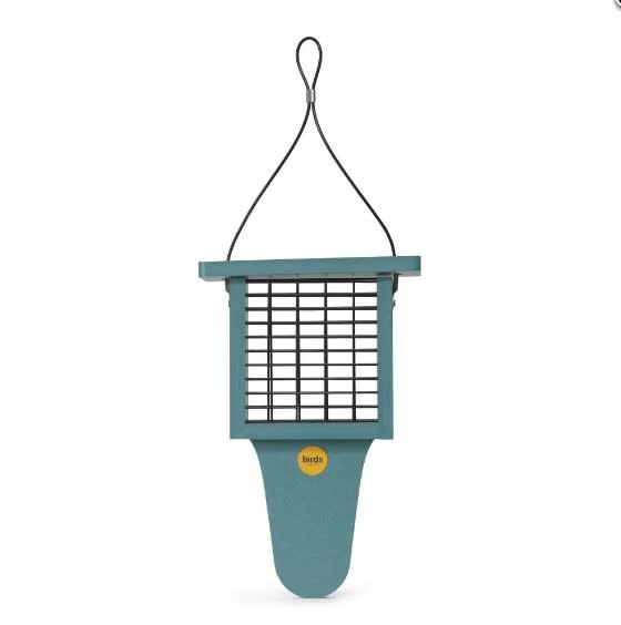 This attractive lake blue tail prop suet feeder is a maintenance-free durable bird feeder constructed with recycled poly lumber material. It is easy to care for and easy to clean. It holds one suet cake.
