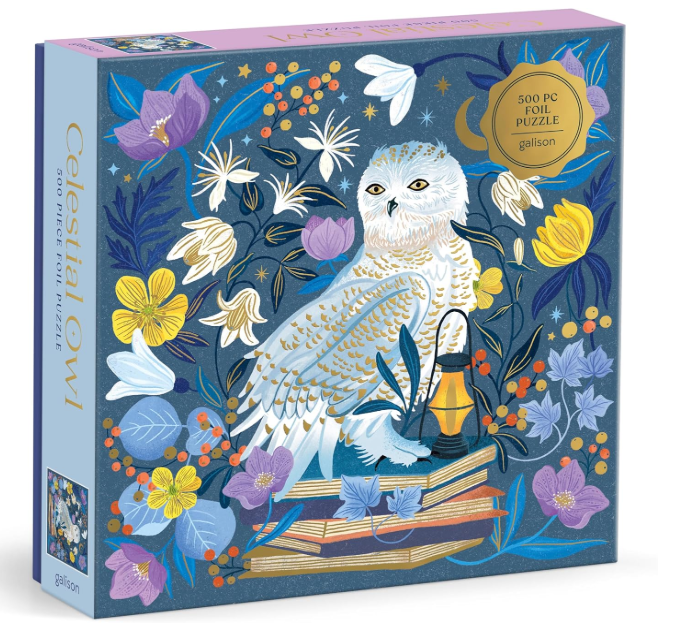 Celestial Owl 500 Piece Puzzle by Galison features beautiful artwork of an Owl under moonlight. This puzzle is just the right level of challenge for the whole family to join in on for hours of puzzling fun! The box includes an insert with the full puzzle image for reference.