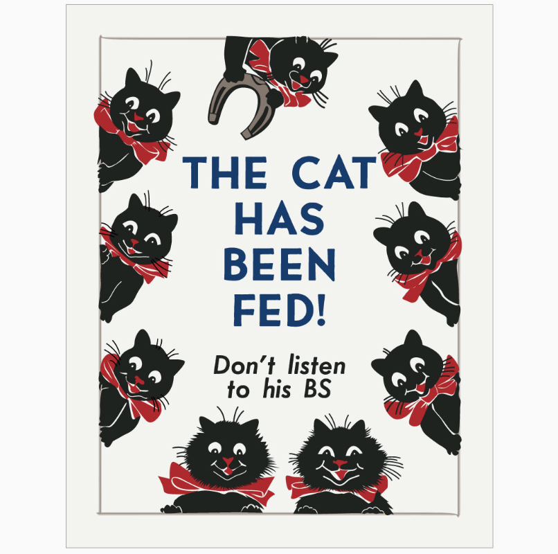 Featuring a bold, clear message, this magnet is surrounded by an adorable array of cat illustrations. It's the perfect visual cue for busy households, ensuring everyone knows when your clever kitty has already enjoyed their meal.