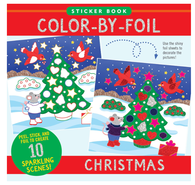 Color fun Christmas pictures with shiny holographic foil! Delightful activity book is designed especially for young children. Comes with 10 different Christmas scenes to complete with the shimmering foil sheets included. Simply place sparkling foil on the sticky areas in each scene, press, and wow!