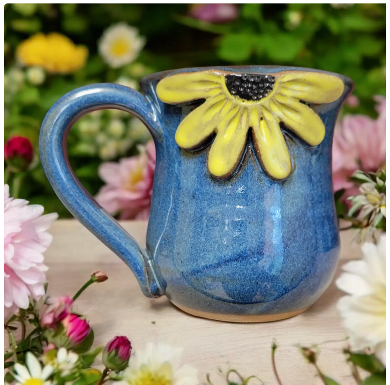 The Black-Eyed Susan Mug is perfect for a good-sized cup of tea, coffee, cocoa... you name it! A gorgeous yellow flower adorns the side of the mug in a grand display of natural beauty. Makes a great gift for any gardener or flower lover in your life!
