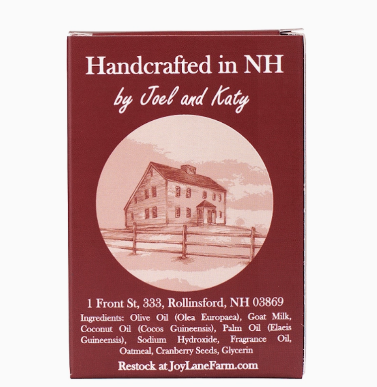 - Ingredients: Olive Oil (Olea Europaea), Goat Milk, Coconut Oil (Cocos Guineensis), Palm Oil (Elaeis Guineensis), Sodium Hydroxide, Fragrance Oil, Oatmeal, Cranberry Seeds, Glycerin
