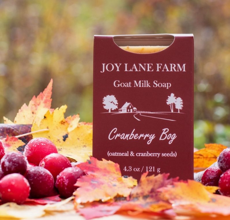 The Cranberry Bog Goat Milk Soap is pleasantly scented with top notes of cranberry, cinnamon, and ginger, cardamom middle notes, and clove base notes. Ground oatmeal and cranberry seeds are blended in for gentle exfoliation. Once cut, the bars are cured for four weeks.