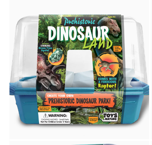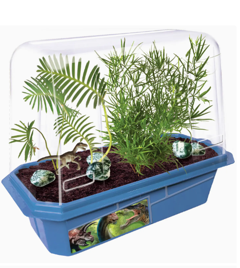 This exciting kit contains everything you need to create your own prehistoric dinosaur land. Let your dinosaur roam among lush prehistoric ferns and the captivating Green Tree Agate stones. The upright and arching ferns are easy and beautiful to grow and will last for years. These ferns are actually part of the lily family! The custom planter features a drainage basin, side ventilation, and large viewing panes. The complete kit comes with everything you need to make your own Jurassic park- just add water!