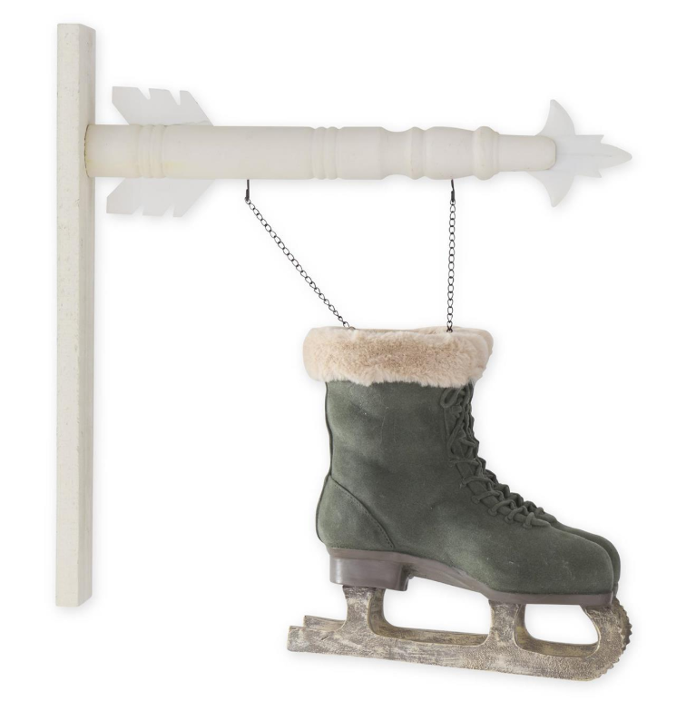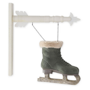 Add vintage-inspired charm to your holiday décor with our Green Velvet Ice Skates with Faux Fur Trim. Crafted from rich, emerald-green velvet and accented with soft white faux fur, these decorative skates bring a luxurious winter touch to any space. Delicate laces and realistic detailing complete the look, evoking nostalgic memories of classic ice-skating adventures. Designed as a replacement hanging for your arrow wall decor, this snowman adds a touch of whimsy and holiday cheer to any space. Arrow is not included.