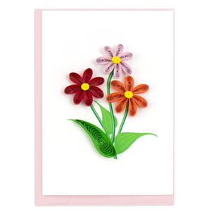 Don’t just send a card, send art! Daisies symbolize purity and motherhood, and new beginnings, making the Quilled Daisy Gift Enclosure a thoughtful choice for your friends and loved ones. This design features quilled red, orange, and purple daisies.