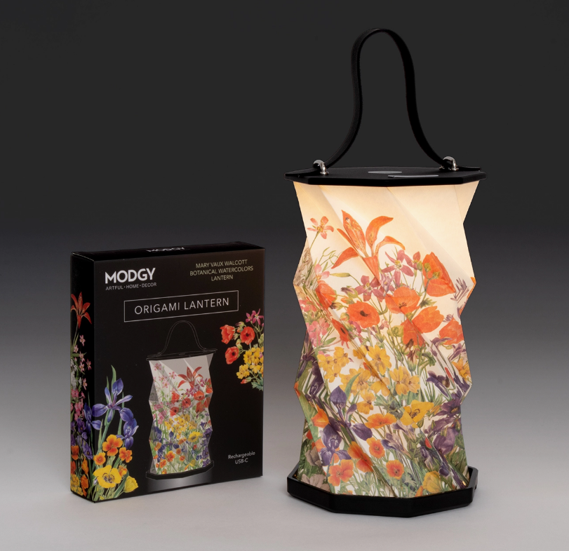 Modgy Origami Lanterns are beautiful and fun way to enhance any décor or event. Origami Lanterns are rechargeable and fold flat, then expand to three different sizes. They emit a warm, dimmable light and come with a carrying/hanging strap and a USB-C charging cord.