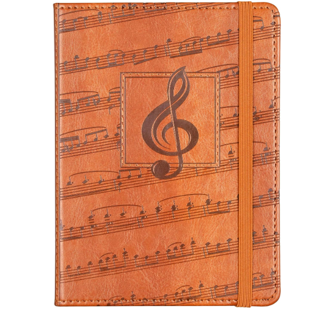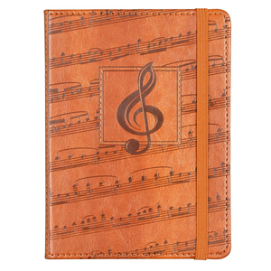 Elegant journal is crafted of soft, leather-like cover material and features a music-themed design. Inside, crisp writing pages are perfect for personal reflection, sketching, or recording favorite quotes or poems. Smooth-finish 120 gsm paper takes pen or pencil beautifully. Premium paper is acid-free and of archival quality. Light gray lines subtly guide your writing. A ribbon bookmark keeps your place.