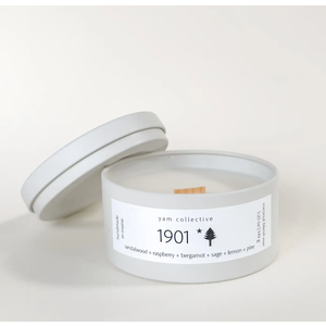 ‘1901’ is everything Maine. Roasted pine blends with wild roots. Top notes of fig leaf, bergamot and sage. Blended with geranium, labdanum, cedarwood and sandalwood. Hand poured in Maine.