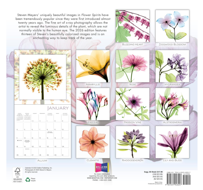 Transform your 2026 planning with the Flower Spirits — Radiographs of Nature Wall Calendar 2026, combining exceptional artistry with the functionality of a premium 2026 planner. This wall calendar delivers both aesthetic beauty and practical organization for every day of your year. Artist Steven N. Meyers uses radiographic imaging to reveal the hidden architecture of flowers, creating ethereal portraits that showcase nature's intricate design. His innovative technique transforms ordinary blooms into extraordinary art, revealing delicate veins, subtle textures, and geometric patterns invisible to the naked eye.