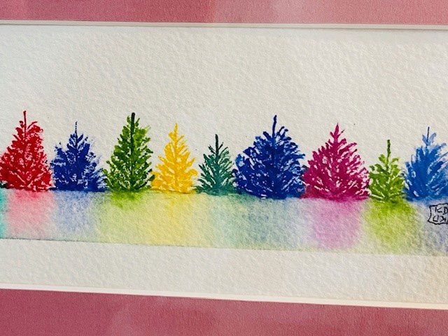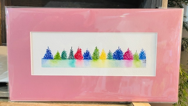 Pebbles and Paint 11x6 inch Whimsical Trees in Rose colored Matte
