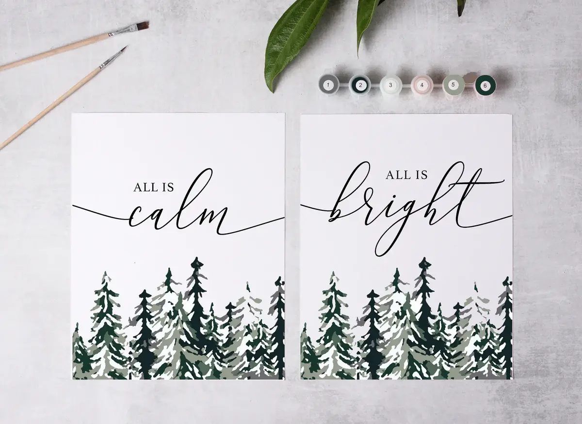 Paint your own snowy trees paintings with these paint-by-number prints and matching paints! Makes for a fun and relaxing activity, and your finished paintings are suitable for hanging and enjoying for years to come.