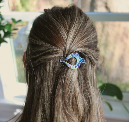 These clips use hand silk screened fabrics from small family owned workshops in Kyoto, Japan. Slight variation in pattern will occur depending on location of cut, this makes these clips one of a kind!