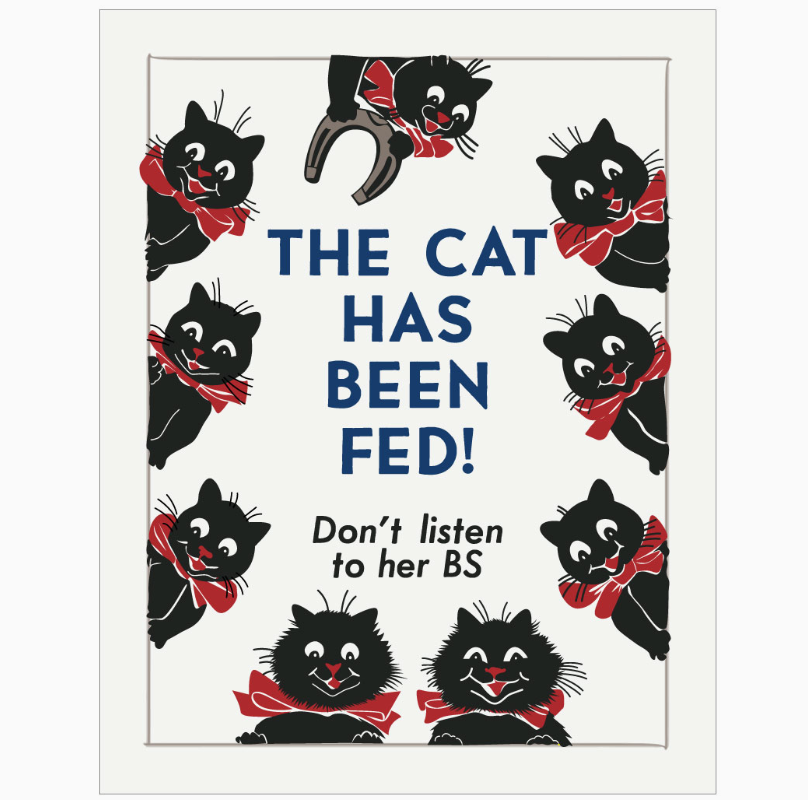 Featuring a bold, clear message, this magnet is surrounded by an adorable array of cat illustrations. It's the perfect visual cue for busy households, ensuring everyone knows when your clever kitty has already enjoyed their meal.
