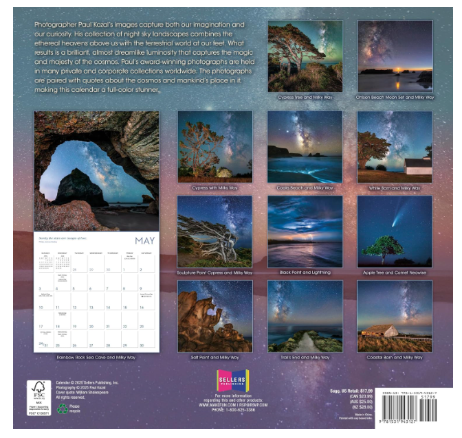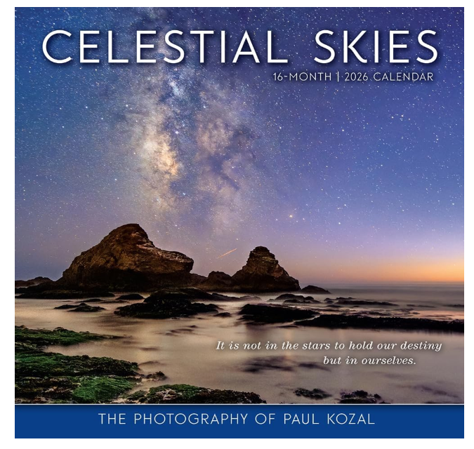 A 2026 wall calendar with Milky Way and night sky images by Paul Kozal, a monthly wall calendar that brings celestial views to your calendar for wall at home, classrooms, studios, and offices while keeping plans visible. 12" x 12" pages open to 12" x 24" with spacious boxes and clean lines make this monthly calendar easy to read and write in, a practical office calendar with room for appointments, reminders, and notes.