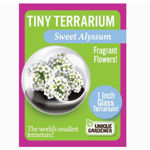 Grow 6 varieties of miniature flowers in the World’s smallest terrarium! Each high-quality globe is handmade and has a flat surface on the bottom to make sure it never rolls. These fun plants are easy to sprout and grow and will germinate in the Tiny Terrarium in about a week! The 36-piece display contains 6 of each variety. The display has small flowering favorites including Forget-Me-Nots, Violets, Primrose, Pinks, and more!
