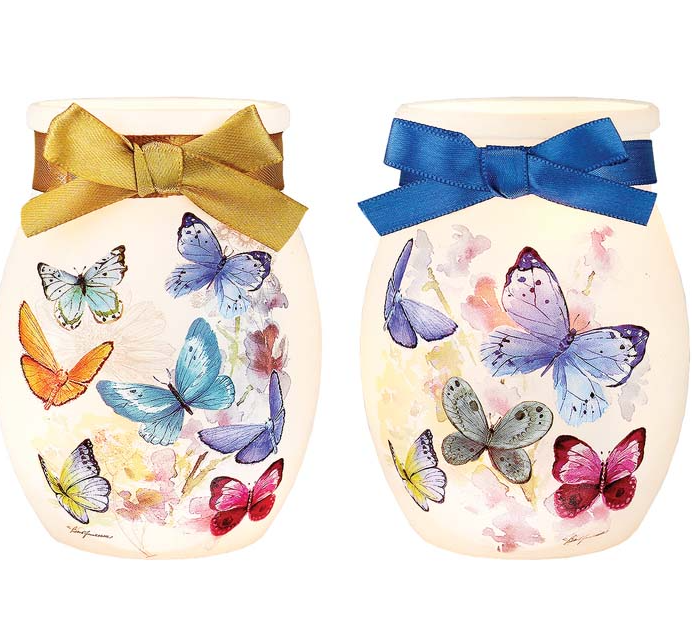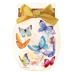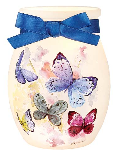 Brighten any space with the charming Flutterbys Pre-Lit Small Jar collection. Each decorative jar features a beautiful collage of delicate butterflies in vibrant colors, creating a cheerful, nature-inspired accent. Soft built-in lights illuminate the design from within, adding a warm glow that highlights the fluttering butterfly artwork.