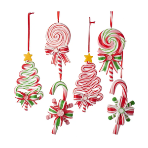 2"H Wood Holiday Drum Orns Boxed Set of 6