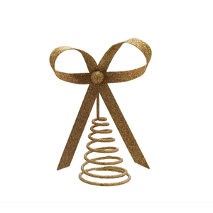 Creative Co-Op Metal Bow Tree Topper Gold Glitter Finish