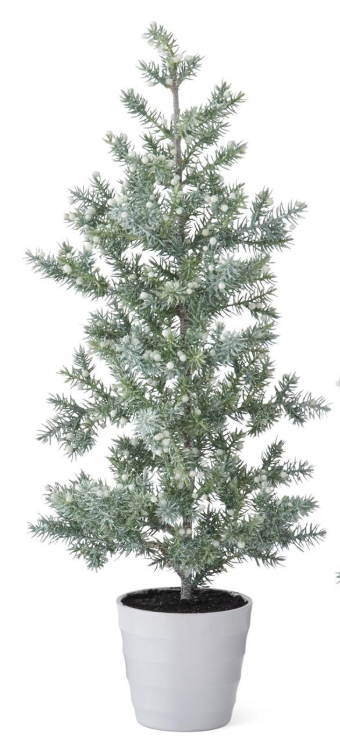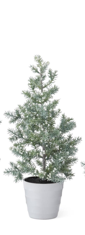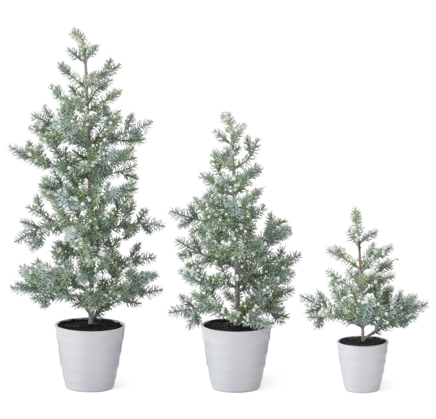 Bring a touch of winter charm to your home with this elegant collection of three mini juniper trees. Each tree is adorned with delicate white berries and lush green foliage, perfectly arranged in a white ribbed pot for a clean, contemporary look. The trio’s varying heights create a visually appealing arrangement, ideal for mantels, shelves, tabletops, or entryway displays.