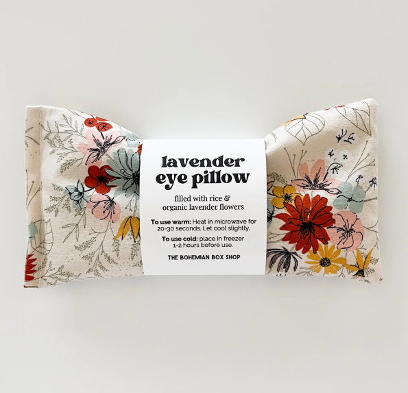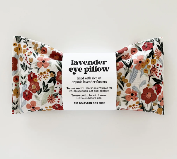 Use cold to reduce swelling. The cold compress helps relieve stress, dark circles and puffy eyes while the lavender flowers promote relaxation and tranquility. Can also be used to soothe headaches and migraines. If using in the freezer, place in a plastic bag first so the eye pillow doesn’t absorb freezer odors.