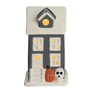 Transform your Halloween decor with the enchanting Large Dolomite Light Up Halloween House. These decorative objects are crafted from high-quality dolomite ceramic, ensuring durability and a charming aesthetic that will elevate your seasonal decorations. Each house features intricate designs and vibrant multicolor finishes that capture the spirit of Halloween, making them perfect for tabletop displays.