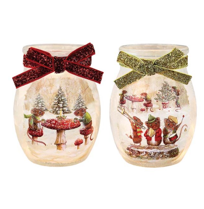 Add a dash of charm and cheer to your holiday decor with the Merry Mice Pre-Lit Small Jar. These delightful glass jars are filled with miniature winter magic, glowing softly with warm LED lights and wrapped with a festive ribbon garland for a cozy, handcrafted touch.
