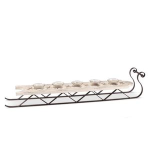 Create a warm, festive atmosphere with these Metal & Cream Wood Votive Candleholders, available in 1, 3, or 5 votive styles to suit any setting. Each candleholder is crafted in the shape of a charming sleigh made from sturdy metal, offering a rustic and whimsical touch to your holiday decor. The sleigh features an inset wooden votive holder painted in a soft cream finish, beautifully complementing the sleek metal design. Mix and match the different styles for a unique, layered look that enhances any room.