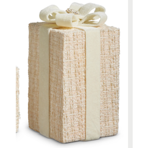 Create a festive focal point with this charming tabletop decor, designed to resemble beautifully gift-wrapped packages. Available in four unique color and size combinations, each piece features realistic details from delicate bows to vibrant wrapping patterns, adding a merry touch to mantels, shelves, or centerpieces. Mix and match for a playful, layered effect that brings holiday cheer to any space.