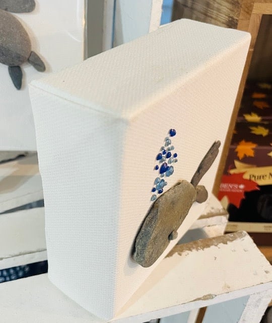 Pebbles and Paint 4x4 inch Whale on Framed Canvas - 1.5 inch thick