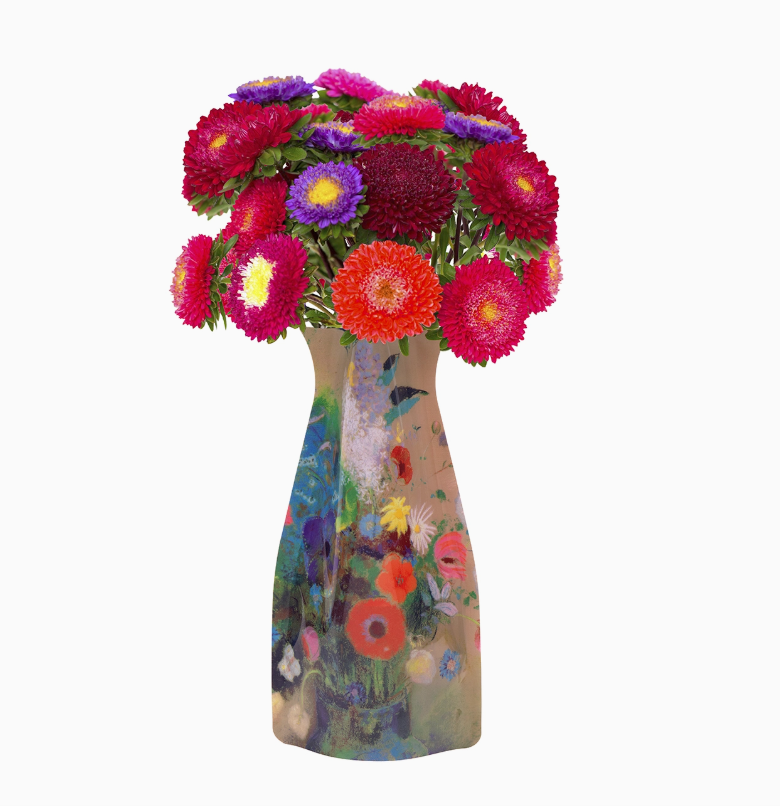 Ideal for brightening every decor, Modgy’s artful, reusable plastic vases pop-up easily for use and fold flat for storage, making it easy to keep a variety of colors and patterns tucked away for any occasion.