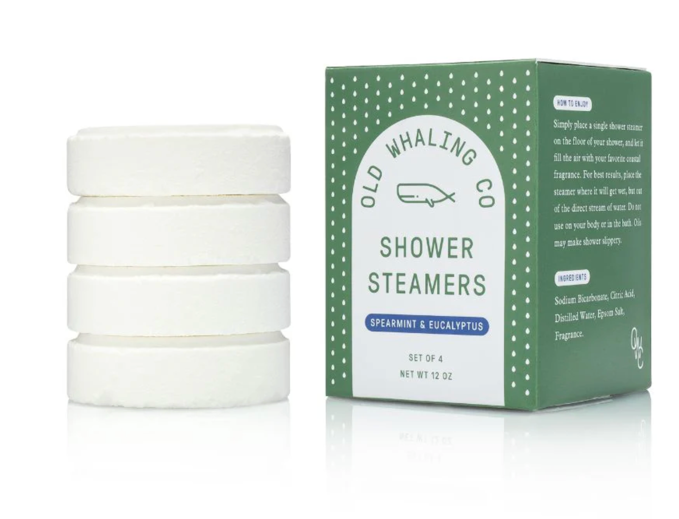 - Each box contains 4 individual shower steamers weighing 3oz each. Ingredients include; Baking Soda, Citric Acid, Fragrance, Epsom Salt, Distilled Water